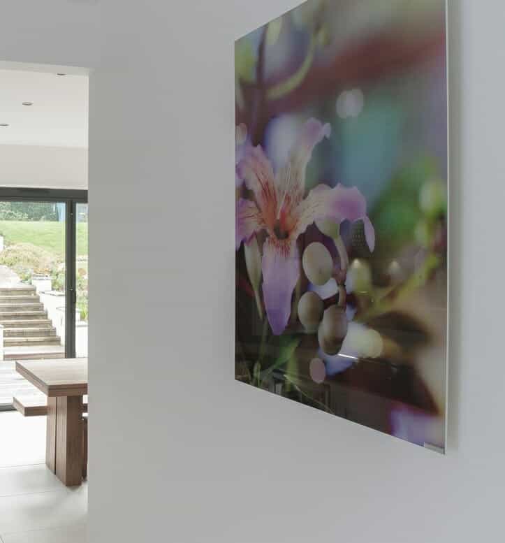 Alle infrarood fotopanelen zijn gedrukt op ESG veiligheidsglas met een keuze uit een hoogwaardige matte of glanzende afwerking. Fotopanelen zijn standaard frameloos, maar tegen een kleine meerprijs is een breed scala aan frames beschikbaar als optie.