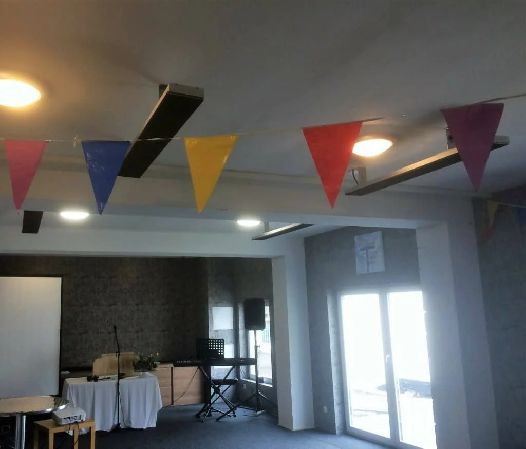 Dhr. Bayense uit Kerkrade was op zoek naar een snelle verwarmingsoplossing voor zijn evangelische vergader ruimte. Convectieverwarming was hier geen optie omdat deze ruimte slecht geïsoleerd is en veel glassecties bevat. Bovendien loerde het schimmelgevaar ook reeds om de hoek.