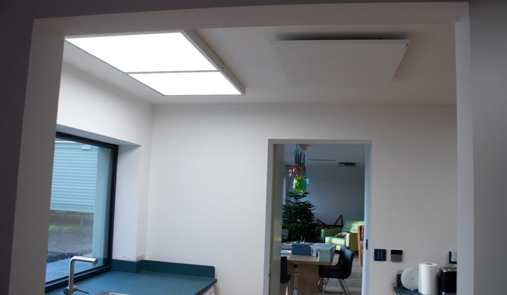 Simon legt ook uit hoe de infraroodpanelen een zeer comfortabele warmte produceren, waardoor hij de thermostaten een graad of twee lager kan zetten dan voorheen, met hun gasgestookte cv-ketel.