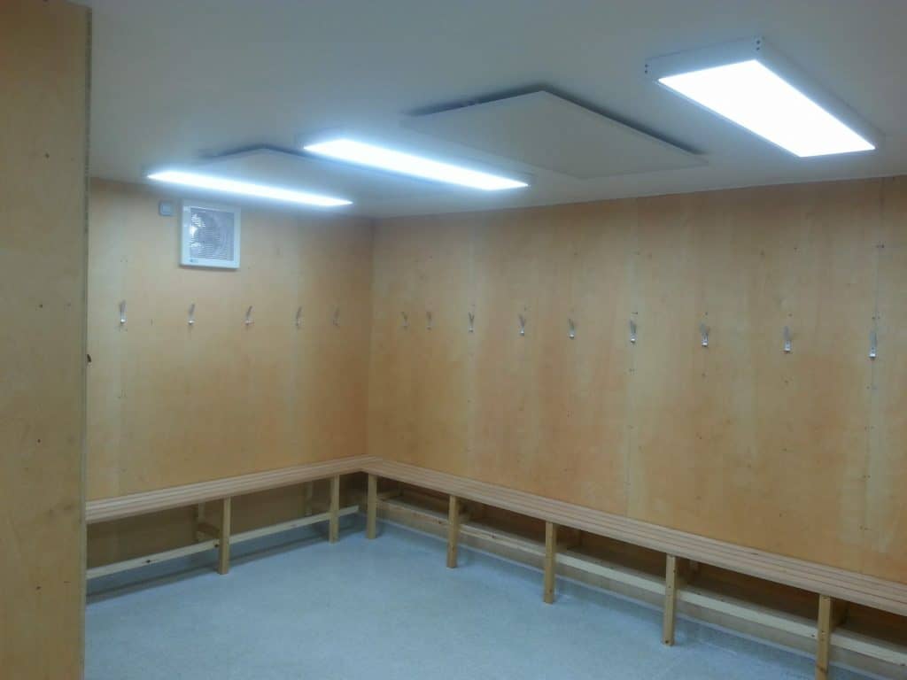 “De Herschel-kachels maakten deel uit van een langverwacht project voor de wederopbouw en uitbreiding van het vervallen, veranderende roomblok uit de jaren 70 met zes onafhankelijke kleedkamers, elk met zijn eigen toiletten en douches en alles volgens de normen van Sport England. Een slim maar robuust ontwerp dat gemakkelijk kon worden gecontroleerd in termen van toegang en operationele kosten. Met al het schakelen centraal gegroepeerd in een afzonderlijke afgesloten kast, passen de op het plafond gemonteerde, witte paneel Herschel-verwarmers precies op deze vereisten, waarbij alleen die ruimten op een bepaald moment bezet zijn in feite wordt verwarmd en dan alleen voor de tijd die nodig is.De algehele warmte in de kleedkamers is goed ontvangen, de panelen zelf zien er goed uit en zijn buiten bereik van potentieel onheil .Na een volledig gebruikseizoen, de kleedkamers en, met name kan de verwarming als een enorme stap voorwaarts worden beschouwd “.