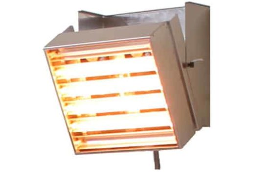 Effectieve, doorlatende stralingswarmte wordt geproduceerd door 6 x kwarts – wolfraam (korte / medium IR: 1,6 – 1,9 µm) lampen. De Vulcan is ook uniek omdat hij is uitgerust met ventilatoren die twee doelen dienen: